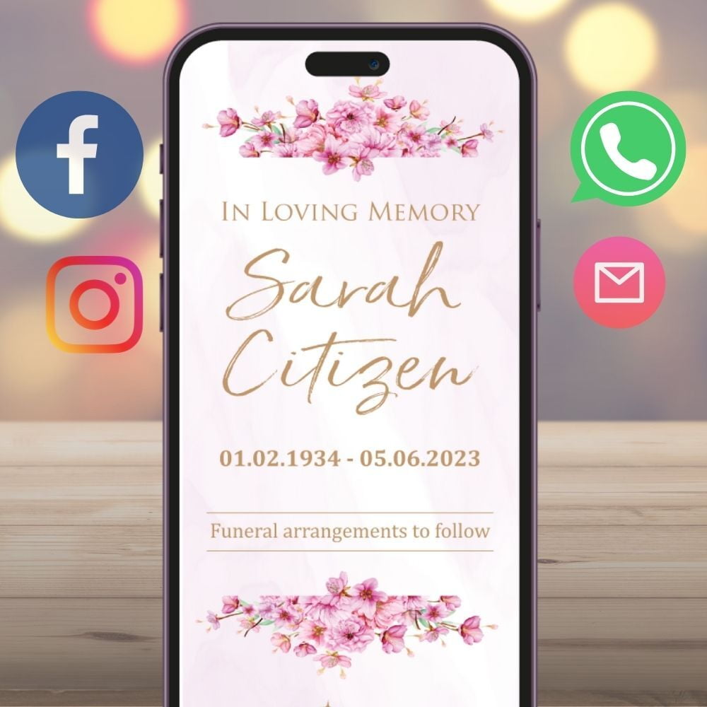 Share the details of the service in a choice of themes via mobile to all invitees on message, email and all social media platforms.
